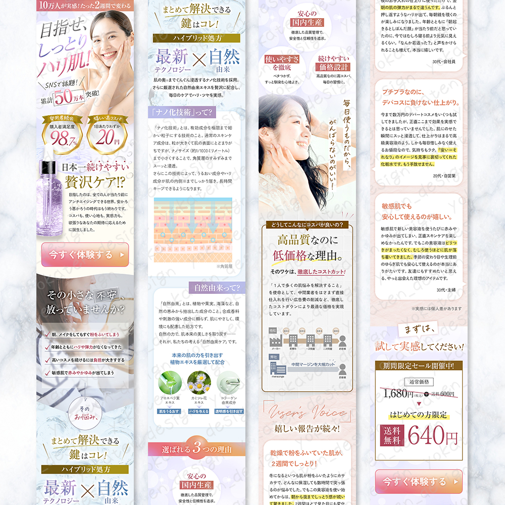 「日本一続けやすい贅沢ケア」をテーマに、冒頭の実績データで信頼を獲得し、「共...