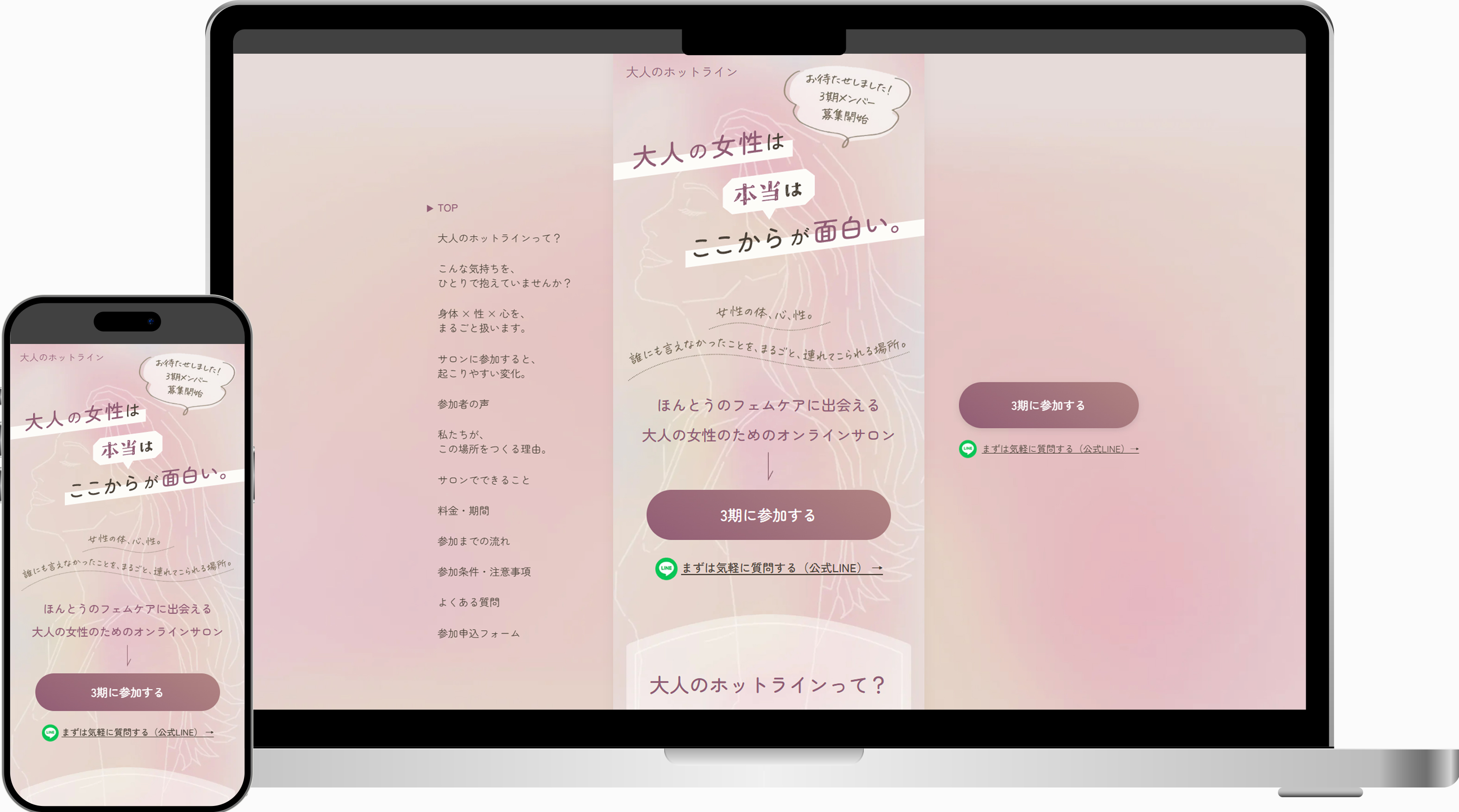女性専用オンラインサロン「大人のホットライン」様のLPを制作させていただきました。