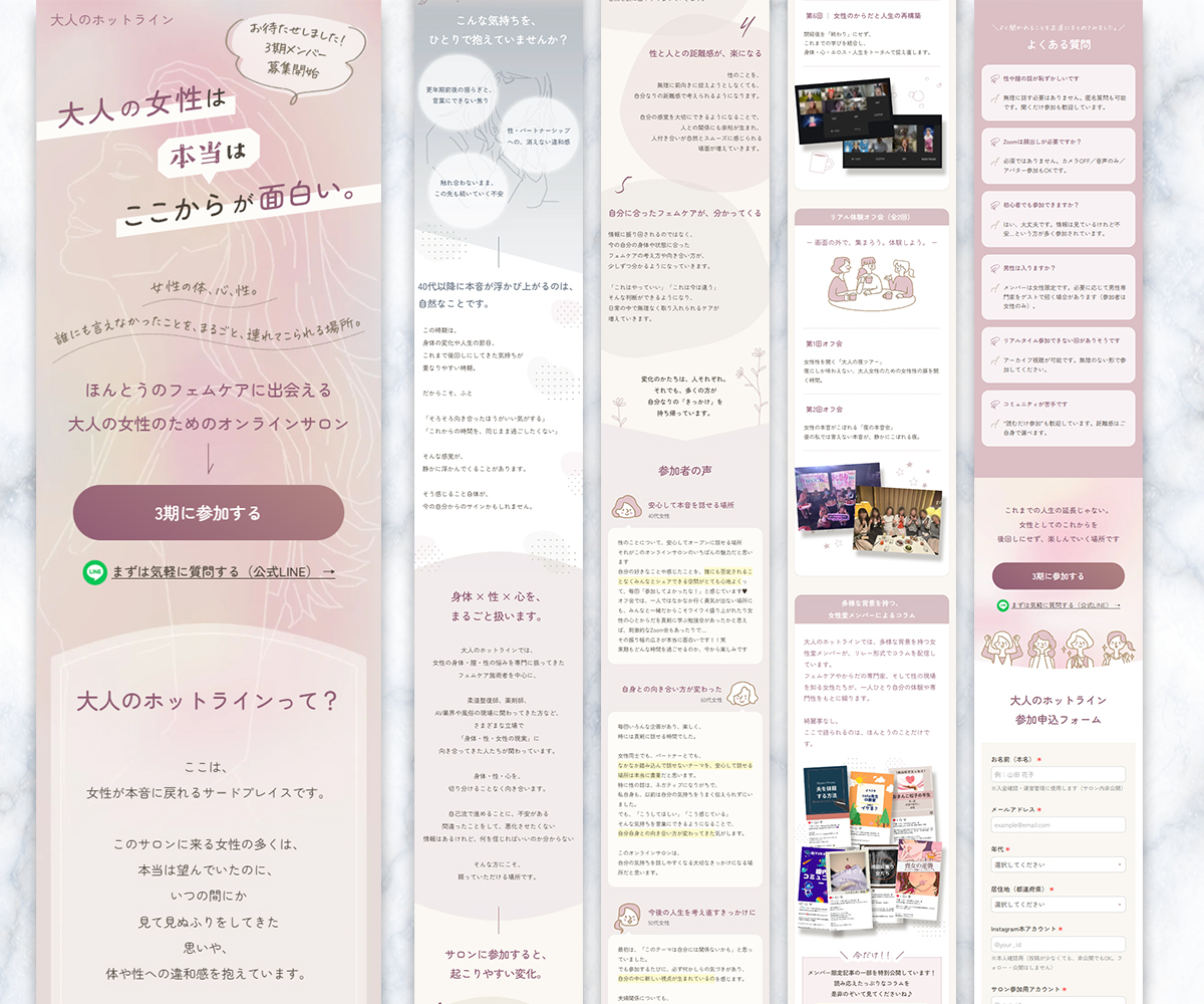 女性専用オンラインサロン「大人のホットライン」様のLPを制作させていただきました。